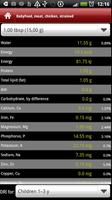 * Menampilkan hingga 80+ nutrisi untuk setiap item makanan: vitamin, mineral, mikroelement, kalori, asam lemak, asam amino dll.