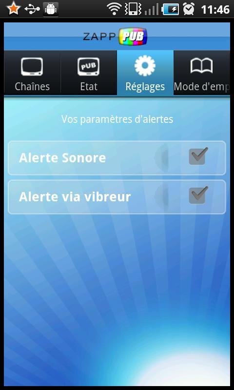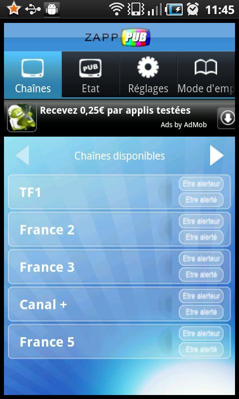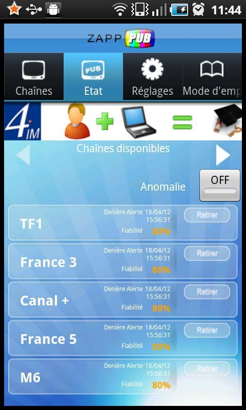 Halaman iklan di saluran TV. Dengan Zapp Pub , Anda tidak perlu melihat