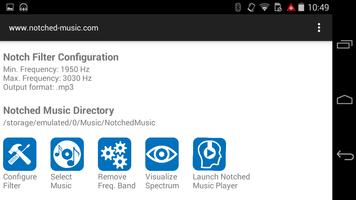 Aplikasi ini memungkinkan semua orang yang menderita tinitus untuk membuat musik berlekuk mereka sendiri. Ini membutuhkan musik yang sewenang-wenang dalam format .mp3-format sebagai input, menerapkan filter takik yang ditentukan pengguna untuk menghapus pita frekuensi kecil di sekitar frekuensi tinitus, dan menyimpan musik berlekuk yang dihasilkan di file .mp3 yang berbeda. Aplikasi ini juga menyediakan alat yang membantu pasien untuk menentukan nada tinitus masing-masing dan untuk merancang filter takik yang dibuat khusus yang paling sesuai dengan kebutuhan mereka. Selain itu, aplikasi ini memvisualisasikan spektrum energi dari musik berlekuk sehingga pasien dapat dengan mudah memeriksa apakah menerapkan filter Notch yang menghasilkan hasil yang diinginkan.