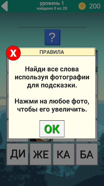 Di setiap level, Anda memiliki 20 foto yang tersedia, yang dengannya Anda harus menebak 20 kata tersembunyi untuk menyelesaikan level. Foto dibuka satu per satu, dan Anda memiliki akses ke sejumlah foto. Seperti yang Anda kira, orang lain akan tersedia untuk Anda. Gim ini tersedia dalam 7 bahasa: Bahasa Inggris, Rusia, Spanyol, Italia, Portugis, Jerman, dan Prancis.