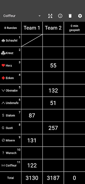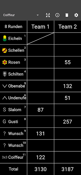 Jass board untuk menghitung poin saat bermain Jass hanya dengan smartphone atau tablet Android.