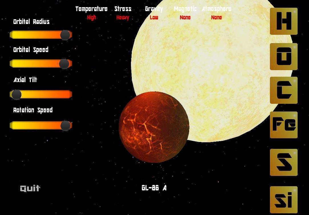 Game ini adalah simulator "Pet Planet". Anda mulai dengan batu sederhana di luar angkasa. Tambahkan elemen ke planet Anda dan ubah hubungannya dengan matahari untuk tumbuh dan membentuk planet Anda. Berapa lama Anda bisa menopang hidup?