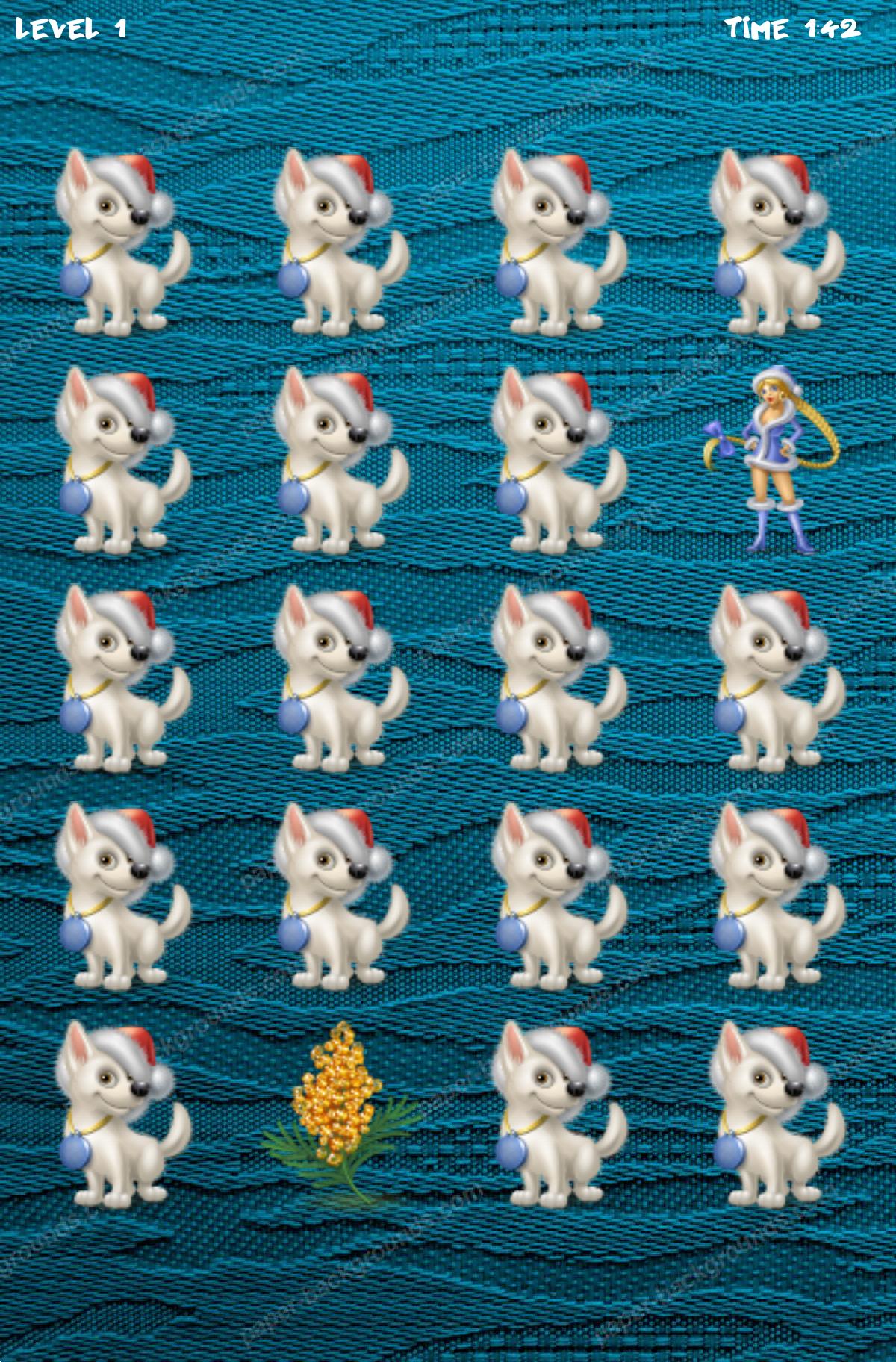 Temukan gambar yang sama di grid. Setiap level memiliki set kartu sendiri. Banyak hadiah Natal ada di sini.