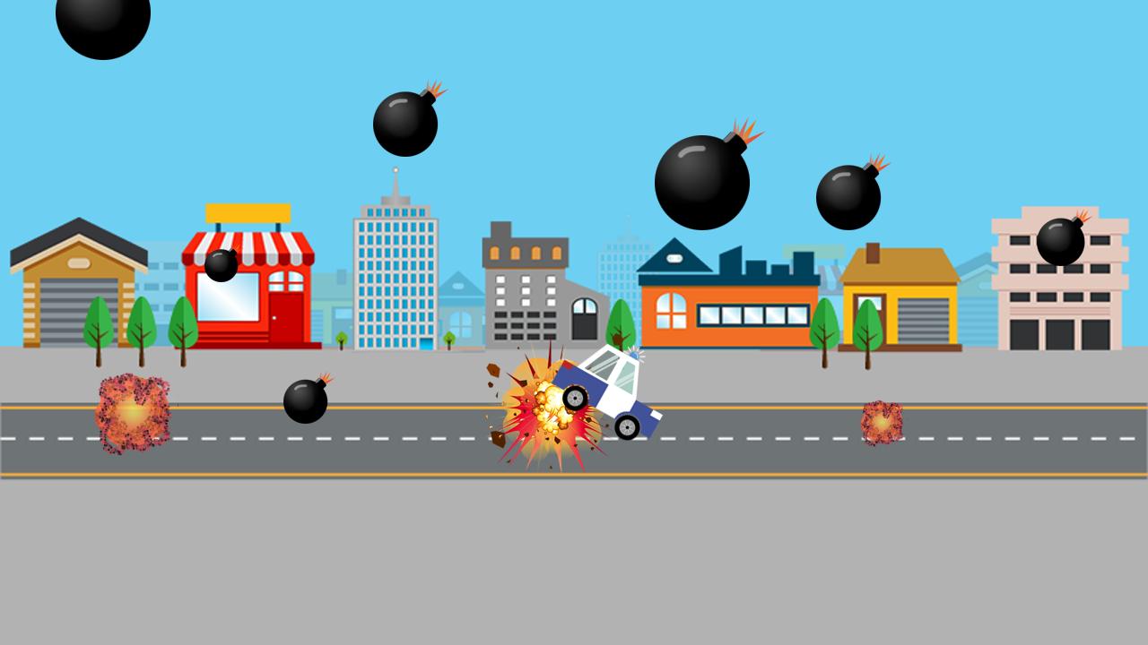 Game-play sangat sederhana, satu-satunya hal yang harus Anda lakukan adalah: sentuh dan seret untuk mengemudi untuk menghindari bom jatuh !!!