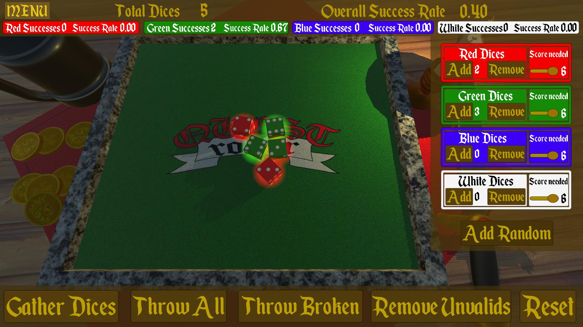 QuestRoller adalah simulator lemparan dadu yang mendalam dan realistis untuk permainan meja yang menggunakan enam dadu yang dihadapi. QuestRoller mencakup antarmuka yang mudah digunakan yang memudahkan penyortiran dadu Anda dan memungkinkan Anda untuk dengan cepat mengurutkan yang lulus tes nilainya.