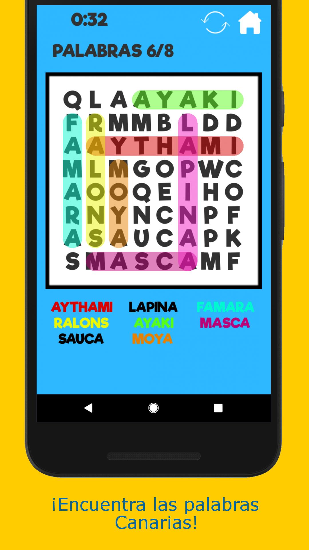 個々のゲームやさまざまなレベルで、カナリア諸島に関連するすべての単語をさまざまなレベルで見つけることができる廃棄されたユニークなスープ。また、新しい単語を学ぶための強力な教育コンポーネントもあります。