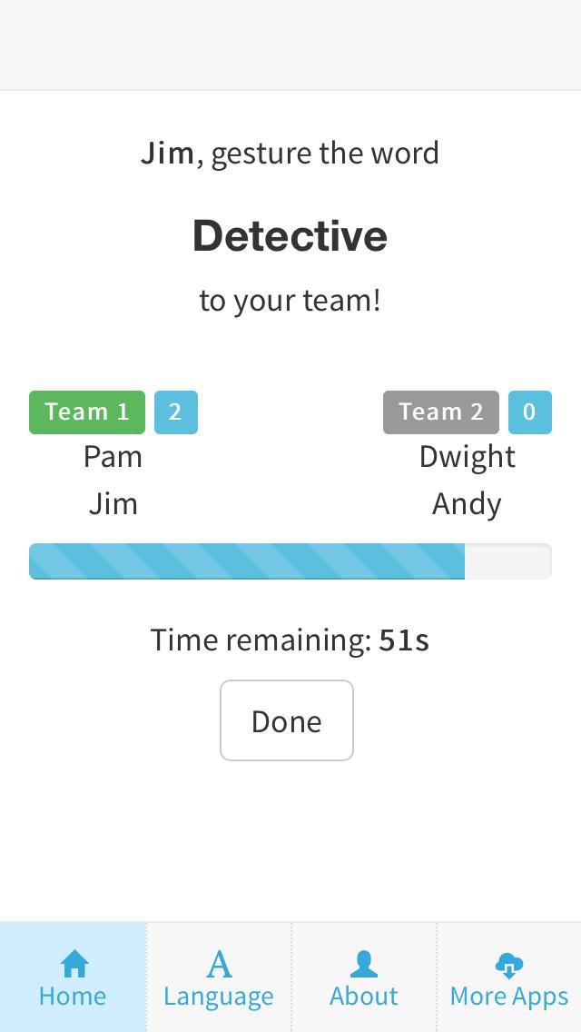 シャレード - 「ジェスチャーを使用して単語を説明してください。簡単な、中程度、硬いシャレードを選択できます」
