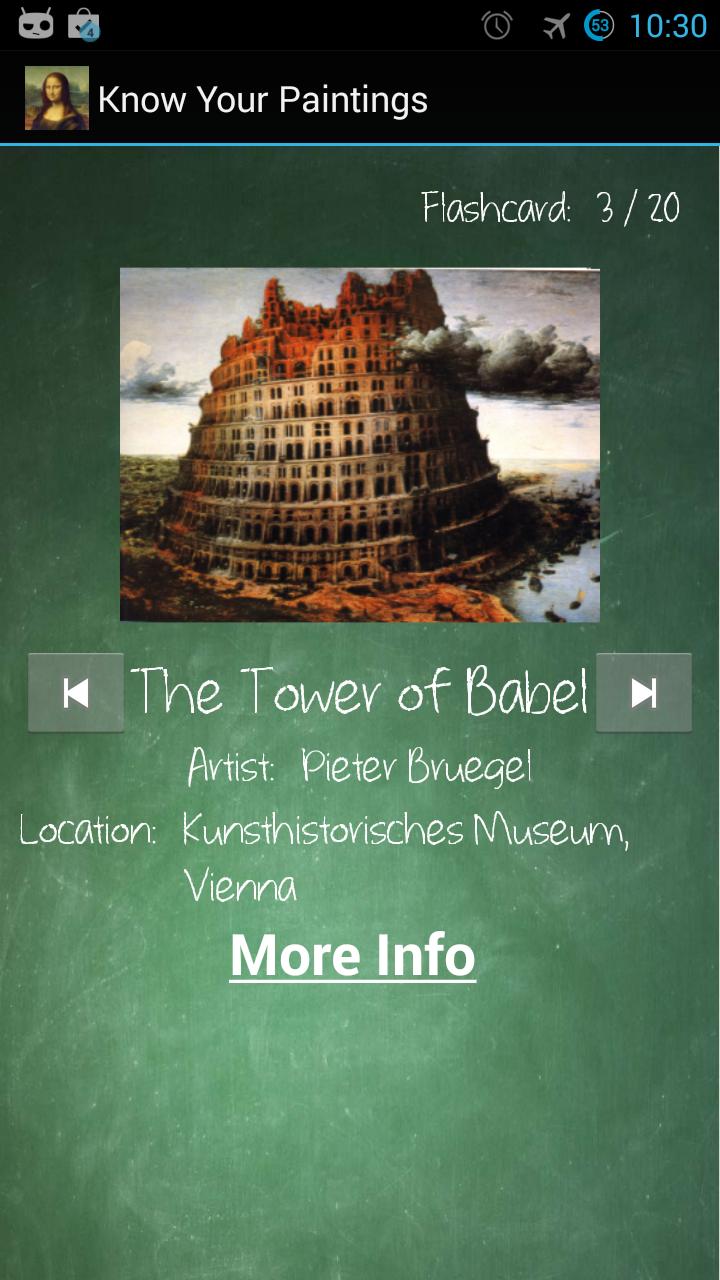 *フラッシュカード - さまざまな絵画を見て、絵画の名前とアーティストを暗記するのに役立ちます。