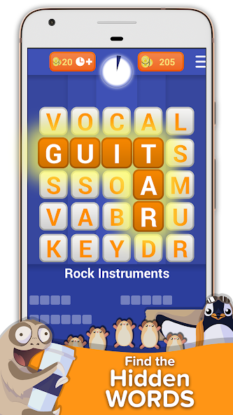 - 文字を接続して非表示の単語をスワイプします。彼らは前進したり、上下に戻ったり、斜めに進むことができます!