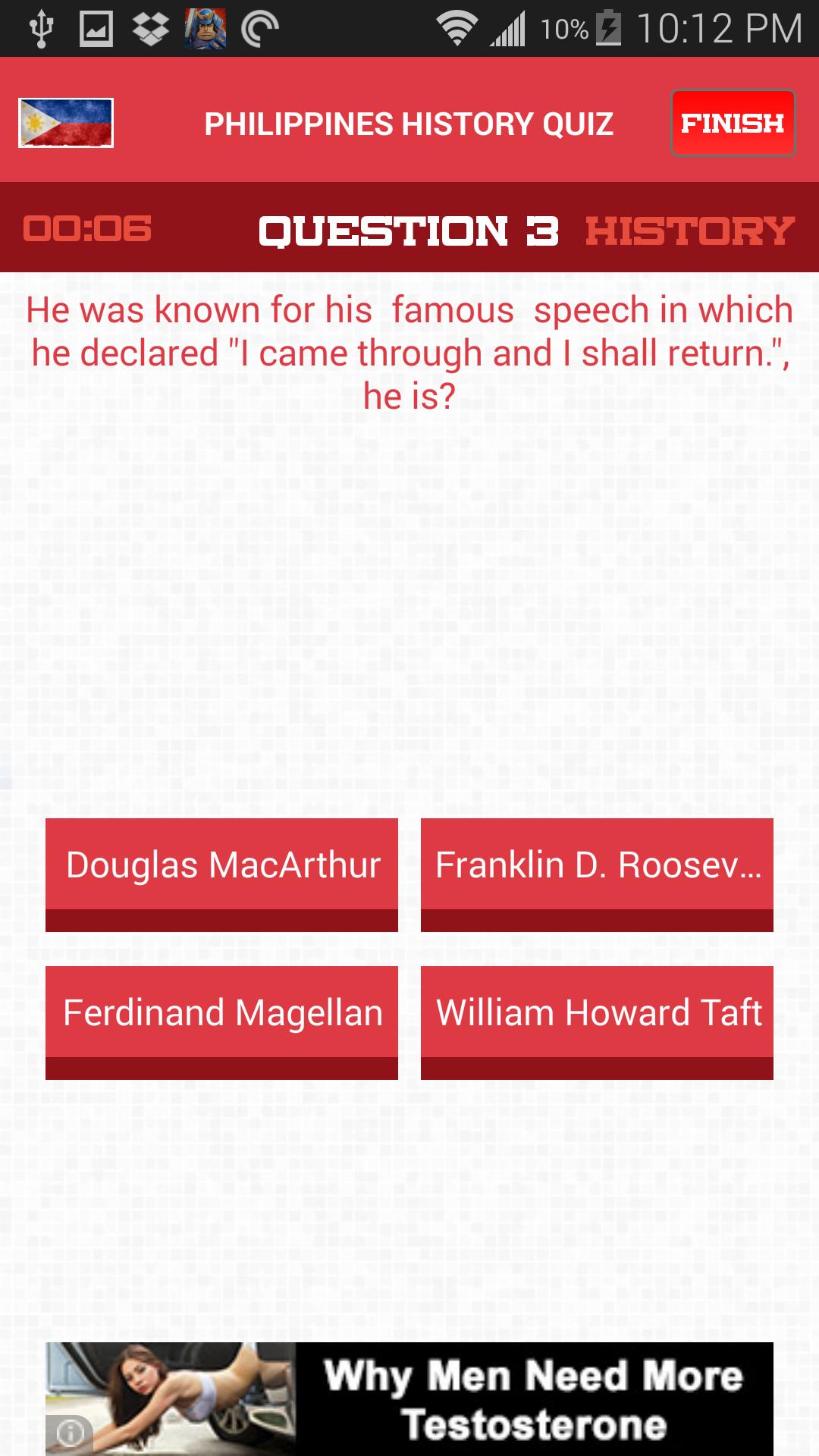 自分に挑戦するためのたくさんの質問。できるだけ多くの質問に答えてください。アプリに追加したいお気に入りのフィリピンの歴史がある場合は、メールを送ってください。その歴史を追加したいと思います。