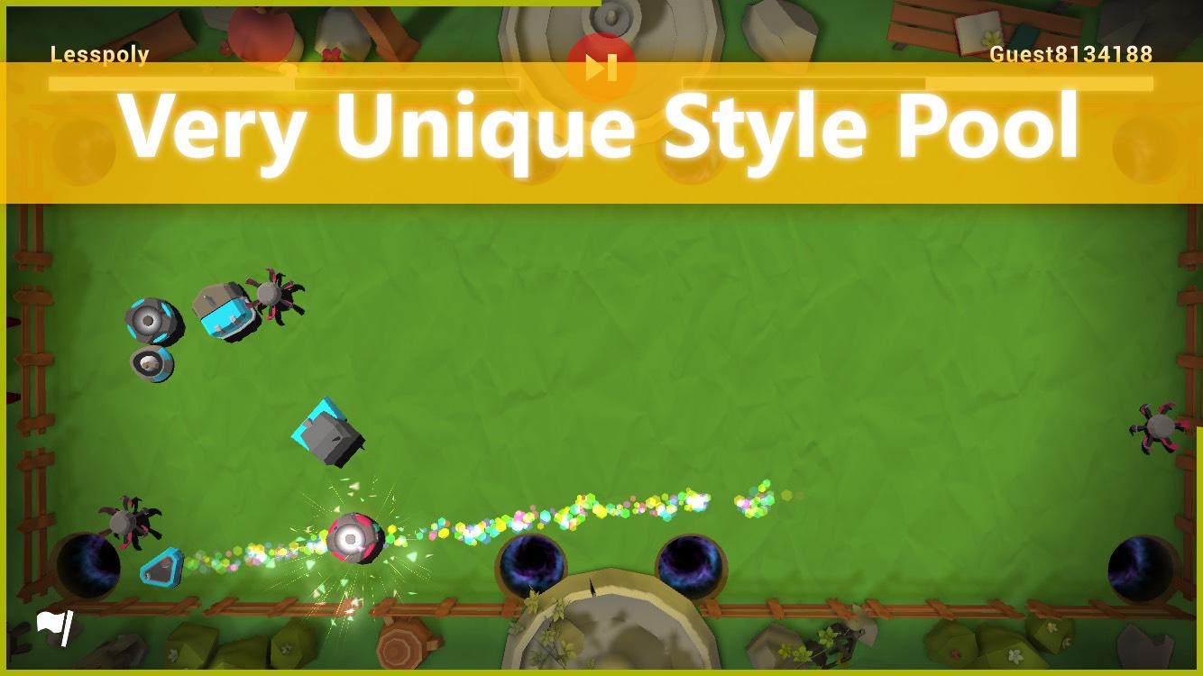 Pool Botユニークにデザインされたビリヤード ゲーム、またはポケット ボール ゲームです。宇宙で資源を採掘するために作られたロボットを操作し、他のプレイヤーのロボットを配置して資源を獲得します。