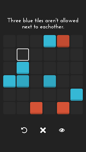 推測することなくグリッドを完成させるのはあなた次第です。タイルをタップして青または赤にし、グリッドを完成させるだけです。