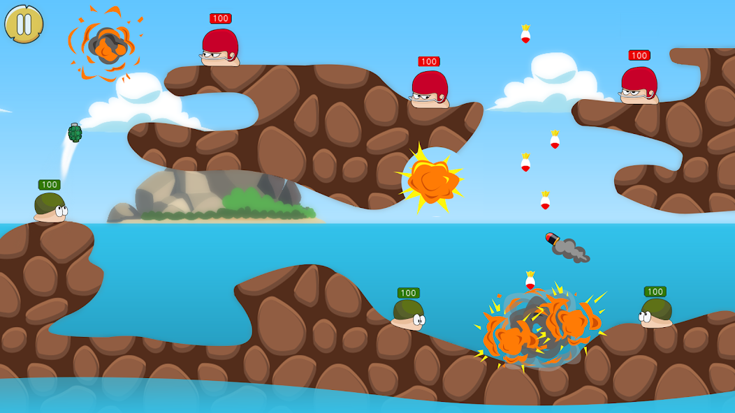 キャラクター間の戦いは島で行われます。地形は、ゲームで利用可能な武器によって完全に変形できます。目標は、対戦相手を排除し、生き続けることです。大砲を覚えていますか?