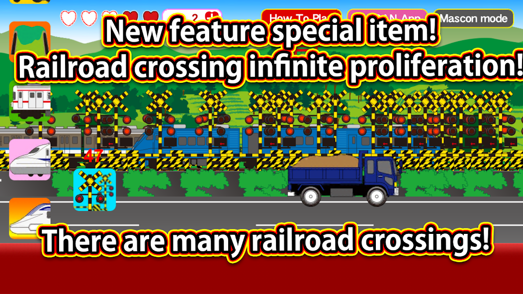 2。「Fumikiri」:このアイコンをタップして、好きなだけ多くの鉄道交差点を開きます。