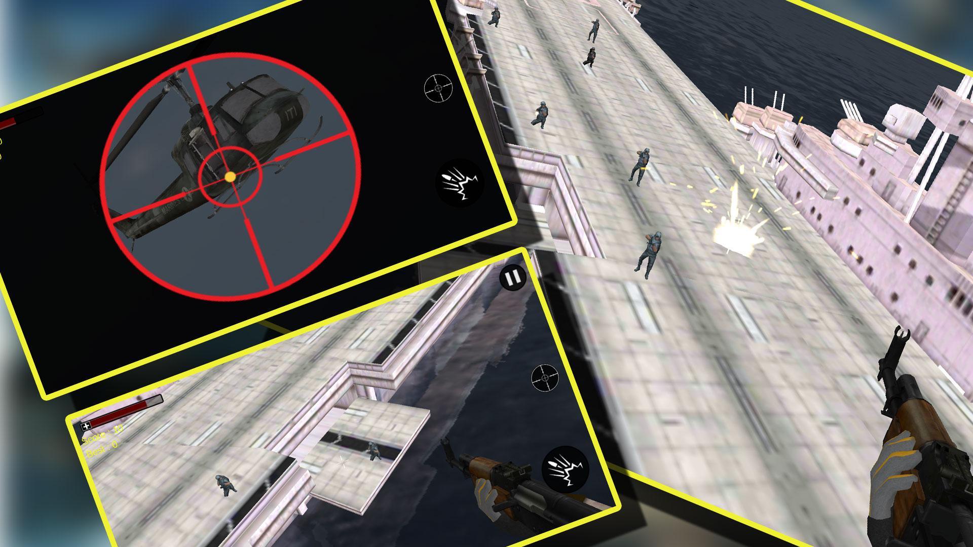 敵はあなたの海洋基地を攻撃し、最大の航空機キャリアの1つを助けて、彼らはあなたの海水に入ろうとしています。彼らは国全体に侵入する前に停止する必要があります。敵はApacheヘリコプターに支えられており、彼らの特別チームはモーターボートにあります。キャリア、兵士、モーターボート、戦闘機を破壊する必要があります。