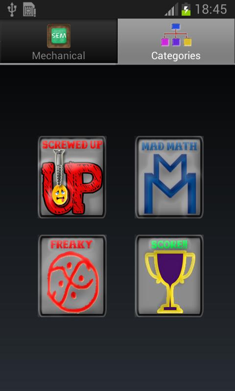 이 응용 프로그램은 또한 여러 가지 엔지니어링 주제를 보여줍니다. 피험자들은 또한 4 가지 다른 범주로 나뉘어져 있습니다 (나사로, 미친 수학, 괴물 및 점수). 이 특정 분류는 다른 주제를 처리하는 방법을 결정하는 데 도움이됩니다. 각 주제에 대한 좋은 책과 함께 가장 힘든 주제를 다루기위한 팁이 제안되었습니다.