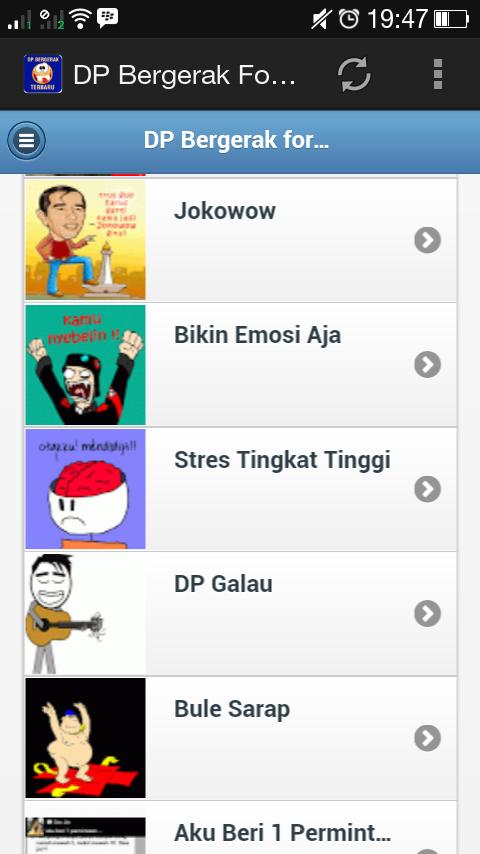 DP Bergerak For Android 메신저 애플리케이션에 설치할 수있는 재미 있고 최신 이미지로 이동하는 디스플레이 사진 모음 (DP)을 제공하는 응용 프로그램입니다.