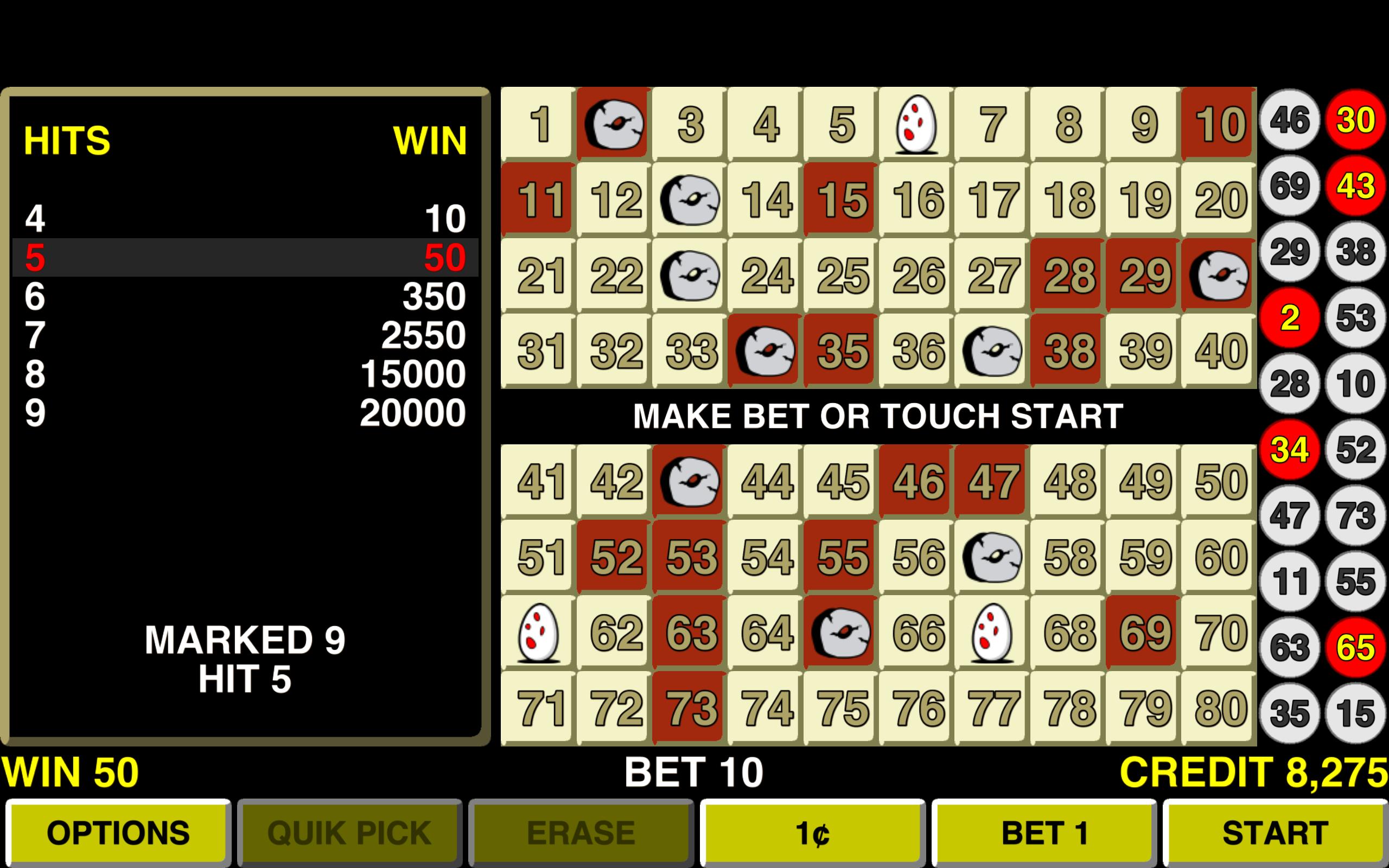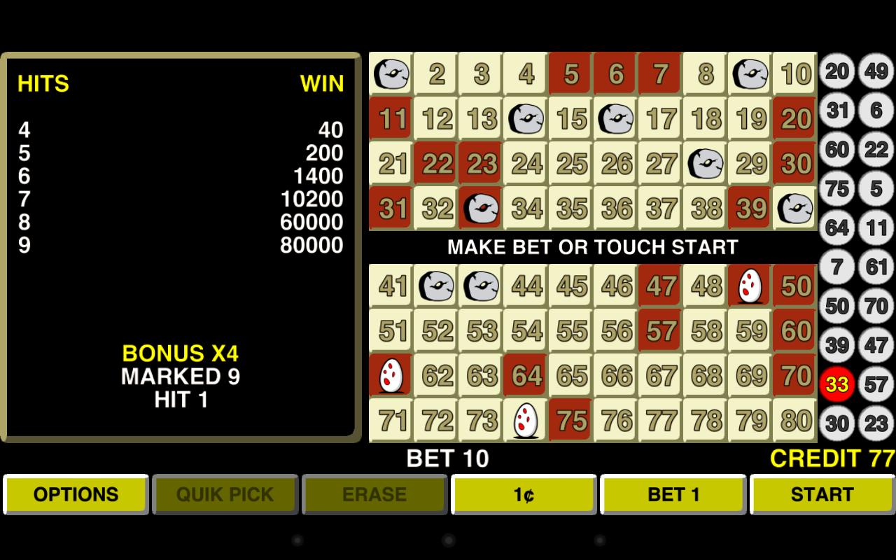 당신은 케노 계란과 같은 클래식 게임을 이길 수 없습니다. 너무 재미 있어요! 너무 많은 사랑. 이제 집에서 또는 이동 중에 케노 계란의 클래식 게임을 연주 할 수 있습니다. 계란 2 개 = 4 배 승리, 3 개의 계란 = 10x 승리를 누르십시오!