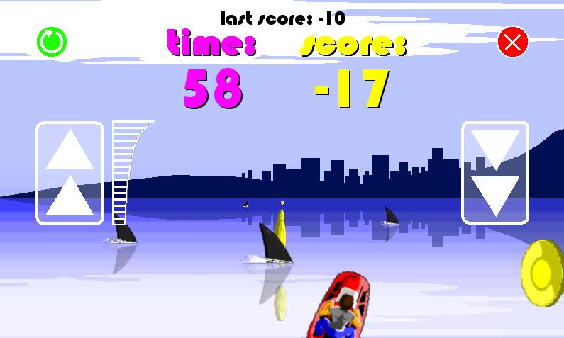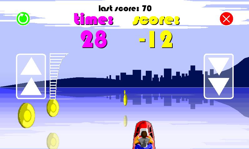 속도 (브레이크) 페달 및 장치 방향 (자이로 스코픽)으로 제어되는 재미있는 물 주행.