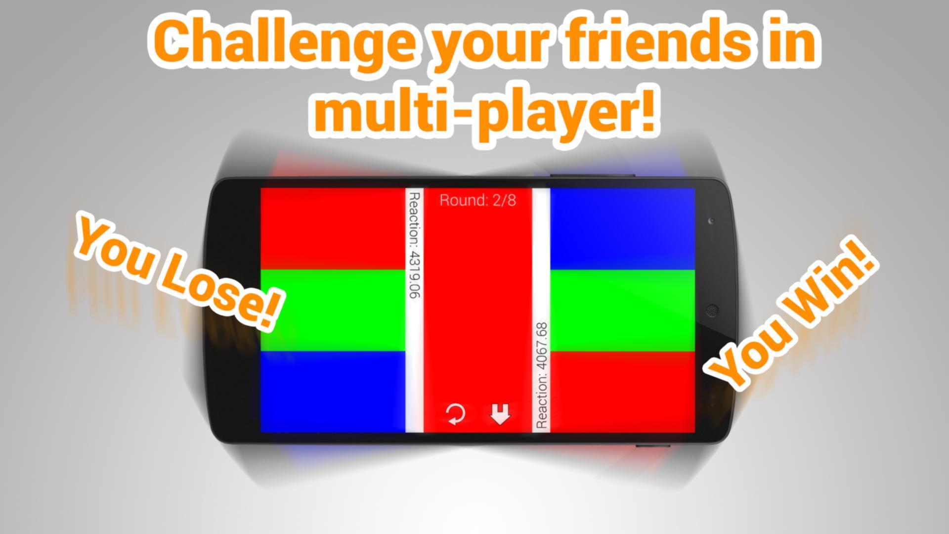 Reaction Games 은 반사 기반 미니 게임 모음으로 벤치마킹하고 반응을 개선하도록 도와줍니다. 친구가있는 멀티 플레이어 모드를 포함하여 6 개의 무료 게임이 있습니다. 또한 간단한 흰색에서 검은 색 "반응 테스트"와 다른 반응 테스트가있어 다른 색상이나 모양에 대한 반응을 테스트합니다.