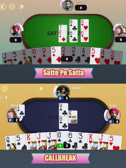 Callbreak, Ludo (Parchessi), Kitti (9 장), Satte Pe Satta, Rummy, Hazari, Klondike Solitaire 등을 즐기십시오. 게임은 계속 목록에 추가됩니다!