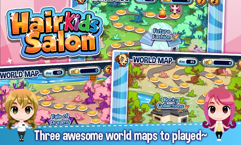 당신의 살롱은 마을의 모퉁이에서 작은 스파로 시작합니다. 모든 어린이와 고객에게 큰 헤어 케어를 제공함으로써 돈을 벌면 마을의 모든 아이들에게 봉사 할 때까지 머리 살롱을 업그레이드 할 수 있습니다!