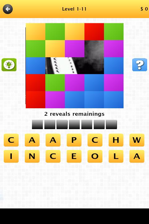 타일로 타일 이미지를 드러내는 퍼즐을 해결하고 사진이나 이미지에 해당하는 단어를 추측하십시오.