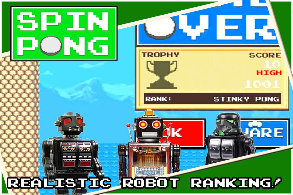 Spin Pong Spin Pong 연령대의 재미 있고 간단한 게임입니다. 떨어지지 않고 4 타점으로 화면의 오른쪽으로 볼을 가져 오십시오. 포인트 : 녹색 공 = 1 오렌지 볼 = 3RED 볼 = 10FIRE 볼 = 25 공을 건조하게 유지하는 것을 잊지 마십시오.