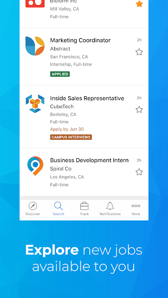 Pesquise empregos e obtenha recomendações, aplique e agende entrevistas no campus.