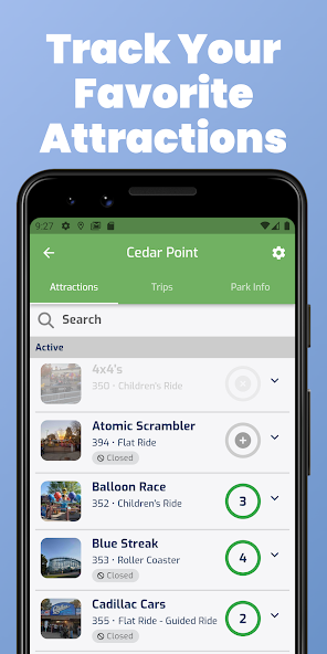 Não se esqueça de verificar cada vez que você visitar um parque. LogRide ajuda a acompanhar quantas vezes você visitou um parque.