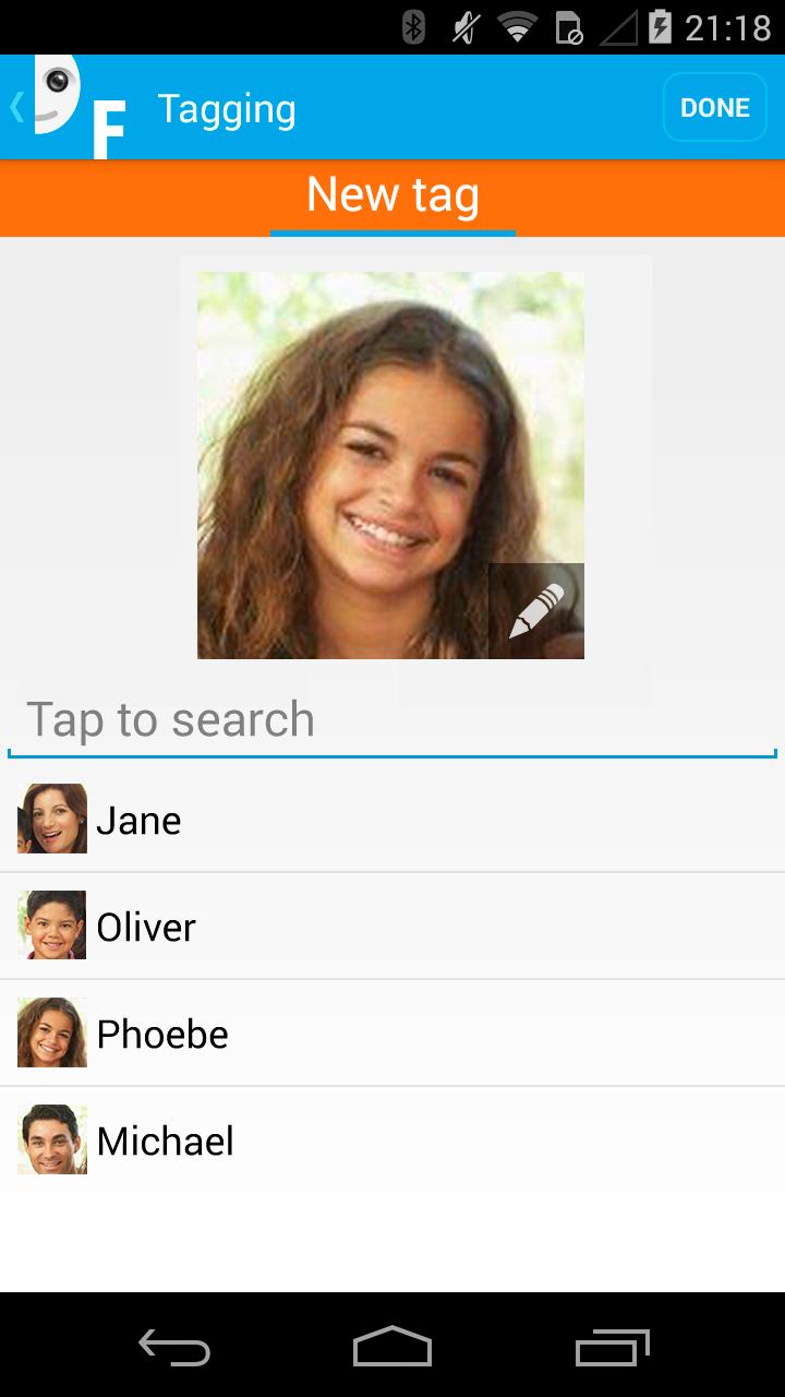 Marque alguém uma vez e o Fototiger marcará a mesma pessoa em outras fotos por si só.