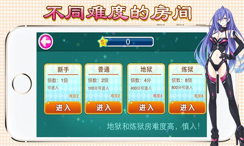 Sala de jogos contendo quatro tipos, quarto fácil, quarto comum, sala dura e casa da sala de purgatório.