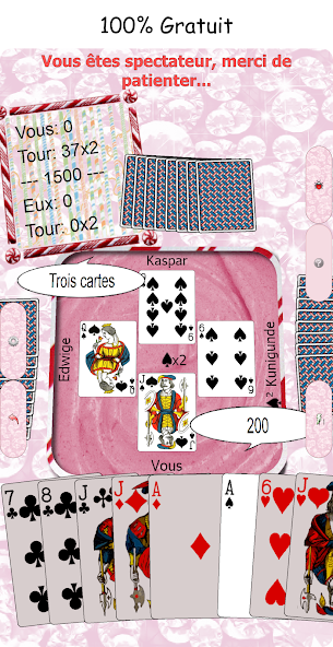 O Schieber Jass for Mobile (ou Chibre em francês), engraçado, livre e fácil de manusear, multiplayer ou solo.