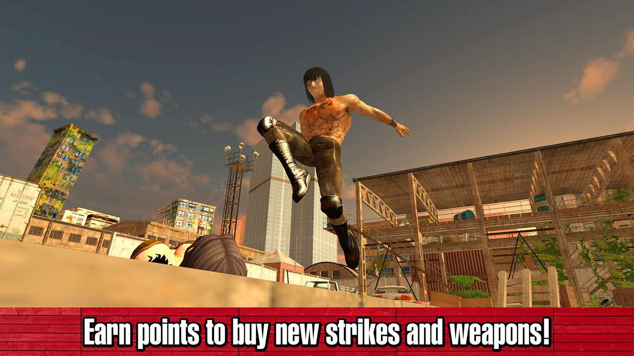 Explore diferentes locais e use diferentes estilos de luta, incluindo Taekwondo, Muay Thai, Kung Fu, Boxe contra Raiders, perseguidores, bárbaros urbanos, bandidos e saqueadores! Lute contra inimigos e sobrevive no ringue o máximo que puder! Ganhe pontos e atualize seu poder, velocidade e precisão ou desbloqueie novos ataques e estilos de luta recebendo pontos por cada morte!