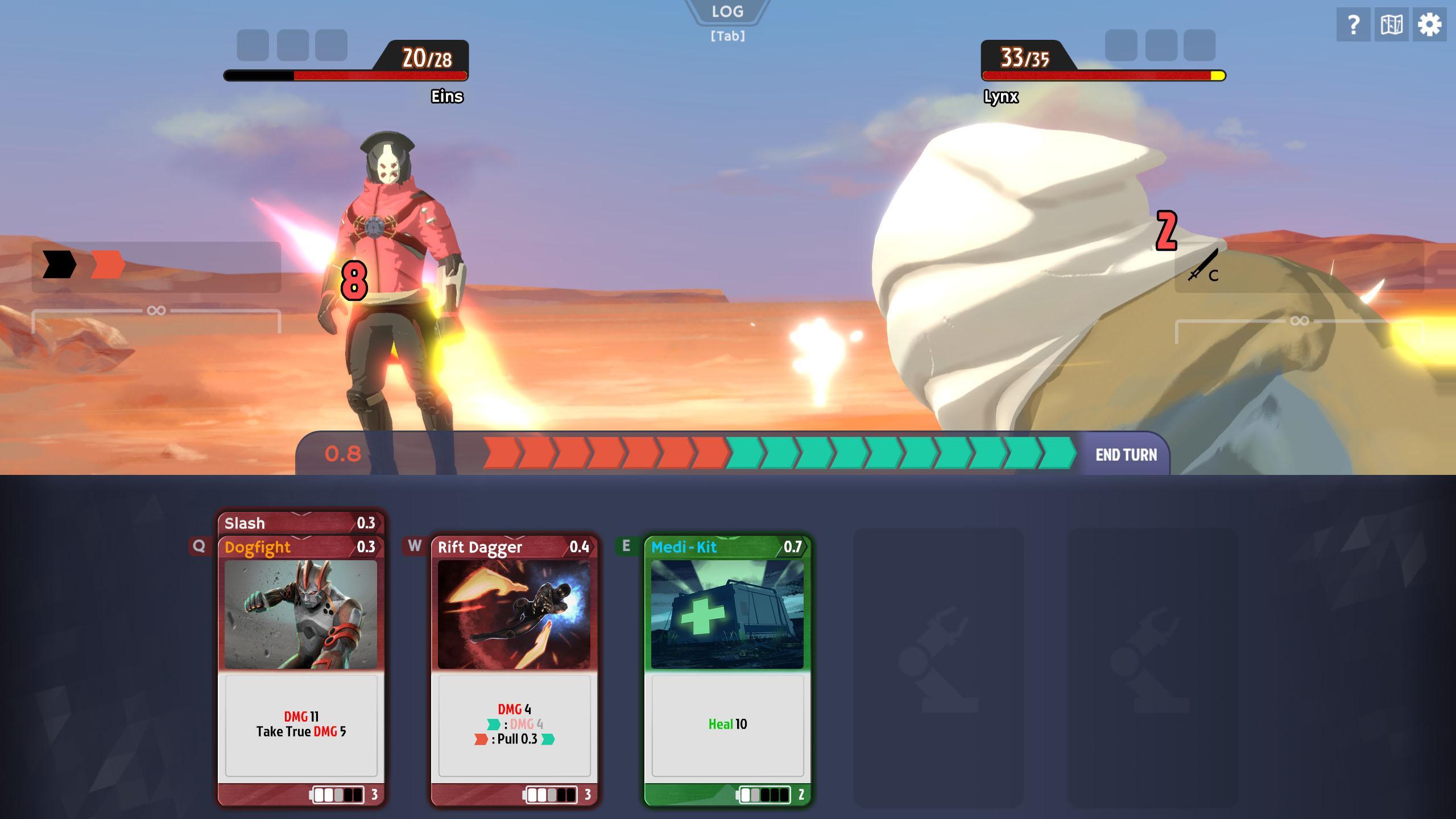 : Queríamos criar um jogo que você pudesse vencer sem confiar na sorte ou na aleatoriedade, um jogo mais dependente das habilidades do jogador do que desenho de cartas. Os jogadores podem organizar a ordem de uso de até 15 cartas para formar as melhores estratégias e táticas para combate.
