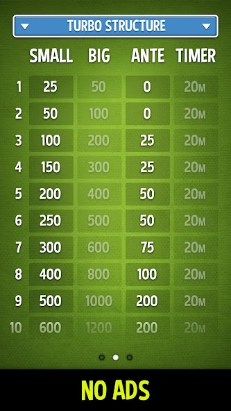 Configure facilmente as rodadas de poker, horário de rodada, valores cegos de poker e ante em sua configuração personalizada.