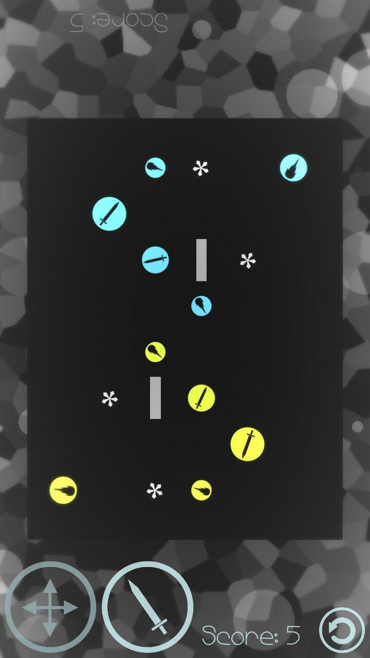 Durante o seu turno, você pode optar por entrar no modo de 'ataque' ou 'mover', selecionando primeiro seus respectivos ícones e puxando a unidade de batalha de volta à direção desejada, como mostrado pela grande seta branca. Quaisquer unidades que tocem o limite serão eliminadas do campo de batalha; portanto, tenha cuidado com a força que você coloca em mover suas unidades!