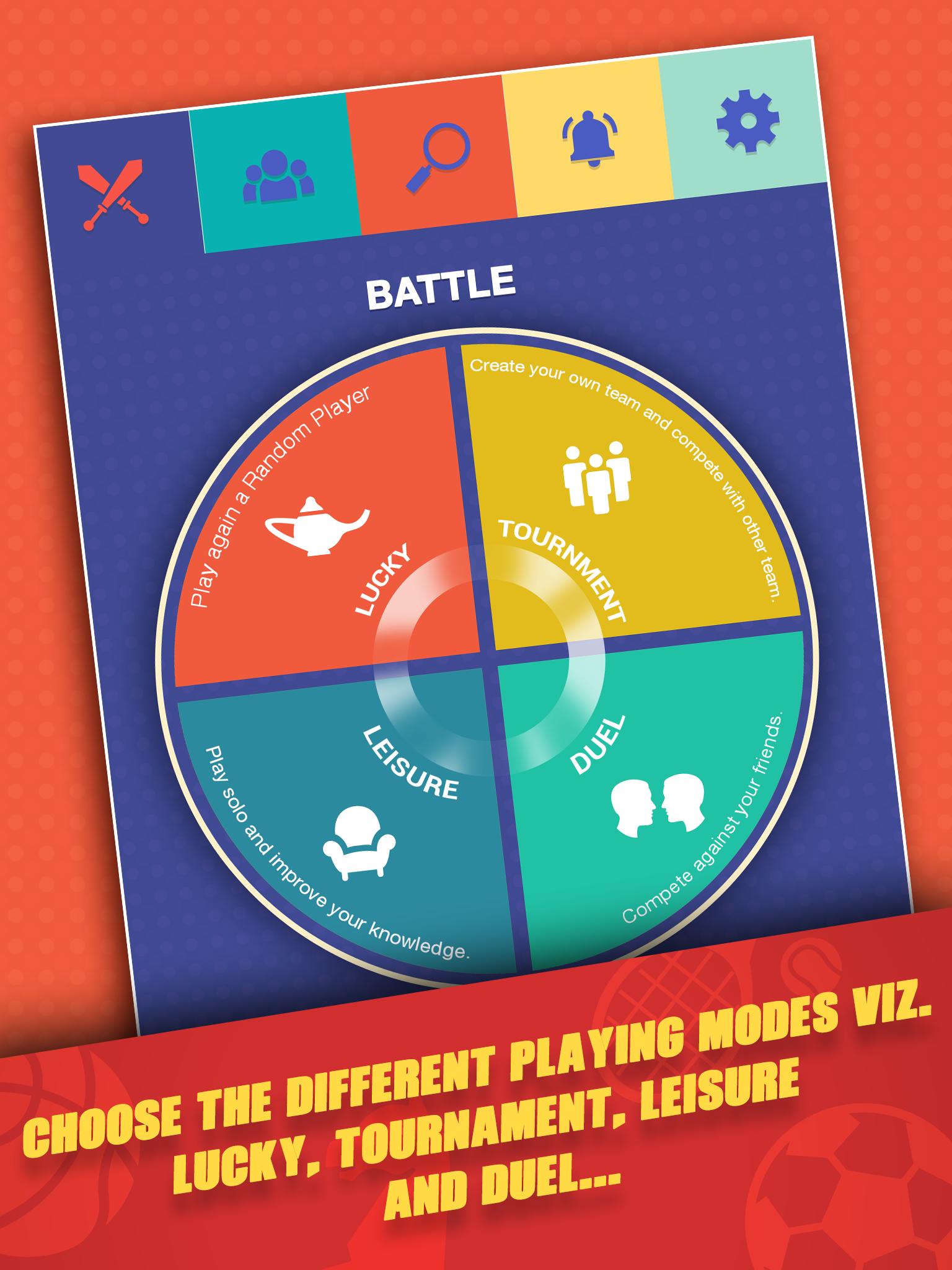 Em outro primeiro no mundo dos aplicativos de questionamento, há quatro maneiras de jogar - desafie um amigo, encontre um oponente aleatório na comunidade Sportswizz, vá solo ou se junte a amigos e jogue contra outro time. Qualquer que seja a maneira que você escolher, você melhorará seu conhecimento esportivo e aproveitará a emoção de ganhar recompensas e crachás gratuitos para os jogos que joga