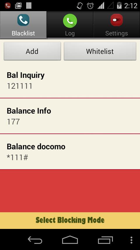 - Journal BlackList Journal, чтобы поместить любой номер в список, чтобы заблокировать