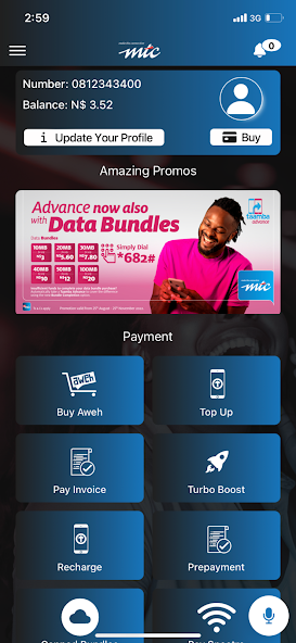 С приложением MyMTC Namibia вы можете выполнить эфирное время, сделать 2. Покупка данных и подписки на AWEH, просмотреть специальные и рекламные акции, найти и получить направление к ближайшим мобильным домам MTC или дилерским вопросам и многим другим.