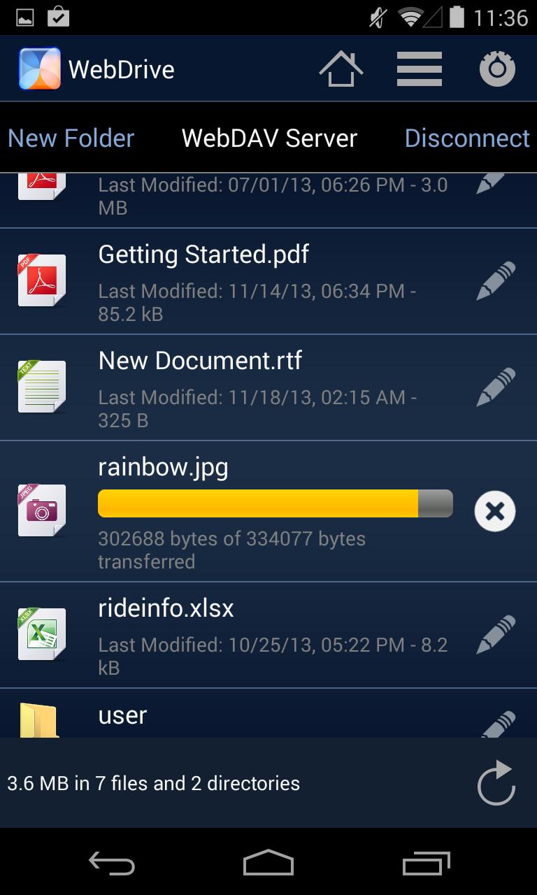 *** Обратите внимание, что в отличие от WebDrive в Windows или Macintosh, эта версия WebDrive для Android еще не поддерживает прямое редактирование документов на вашем сервере. В настоящее время мы работаем над этой функцией, и редактирование будет предоставлено в качестве бесплатного обновления существующего WebDrive для клиентов Android.
