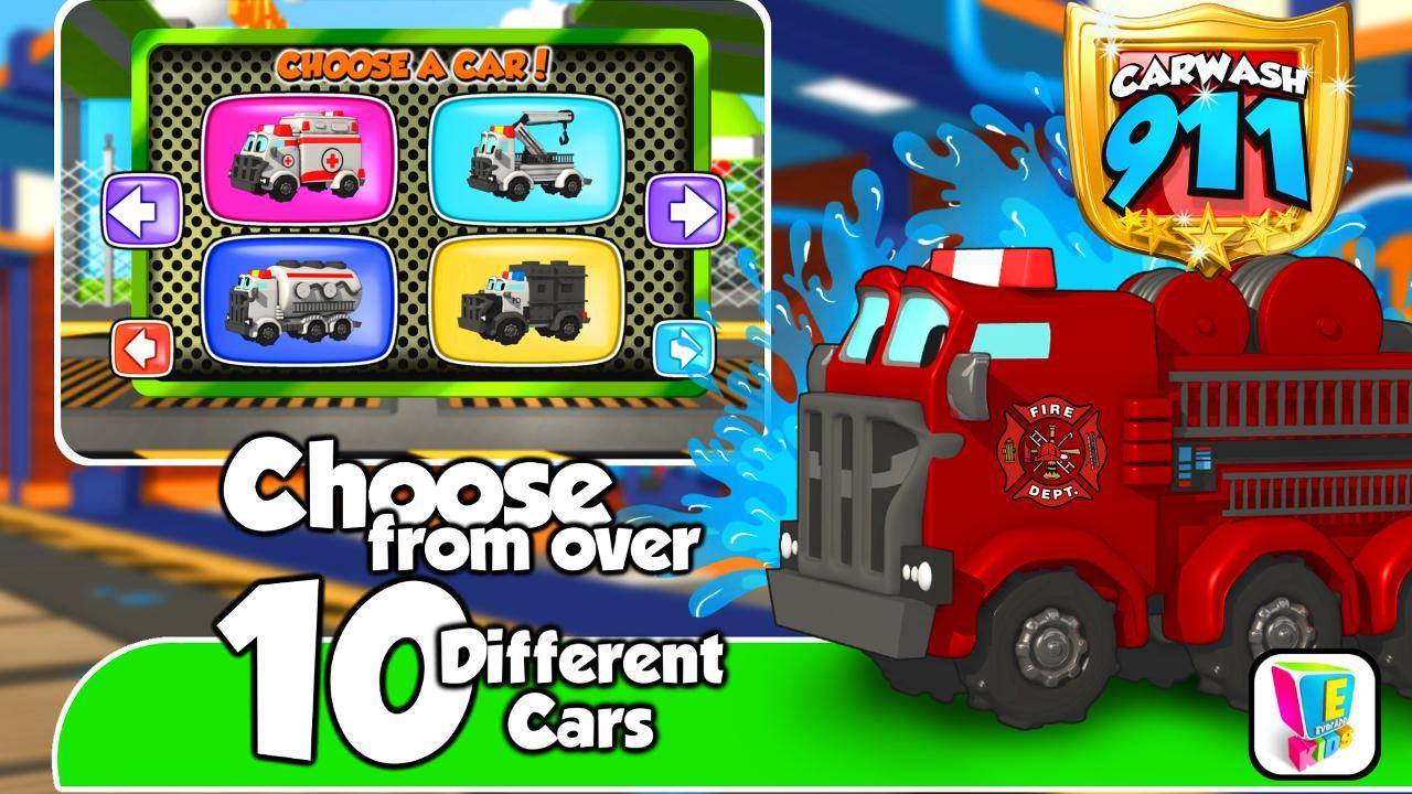 Carwash 911 - это забавный симулятор автомобильной стирки, который обучает детей различным этапам стирки транспортных средств экстренных служб - полиция, пожар и машины скорой помощи!