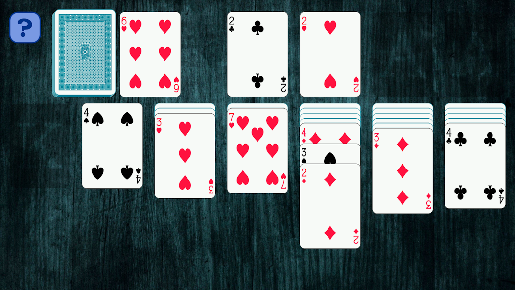 Clondike Solitaire-это классическое терпение со стандартными правилами: зона правого вершины-это «дом» для тузов (с символом «a») и тем же костюмом и более высоким рангом (например: Ace-two-three-four ...), свободная клетка с символом «K» для King и противоположного прихода (например: черно-красный или красный-черный) и нижний рейтинг (например: kqj-e-e-e.