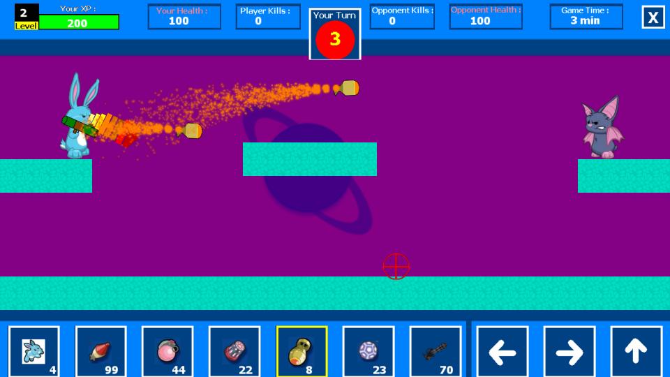 Wild Wars - это игра на основе поворотов, в которой у каждого игрока есть своя очередь, чтобы играть, вы выбираете своего питомца и покупаете необходимое оружие, затем вы выбираете желаемую карту и бум! Битва начинается!
