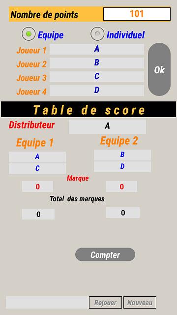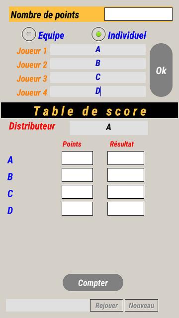 Приложение используется, чтобы отметить оценки каждого игрока Рами в 2 типах игры в талатинг и простых