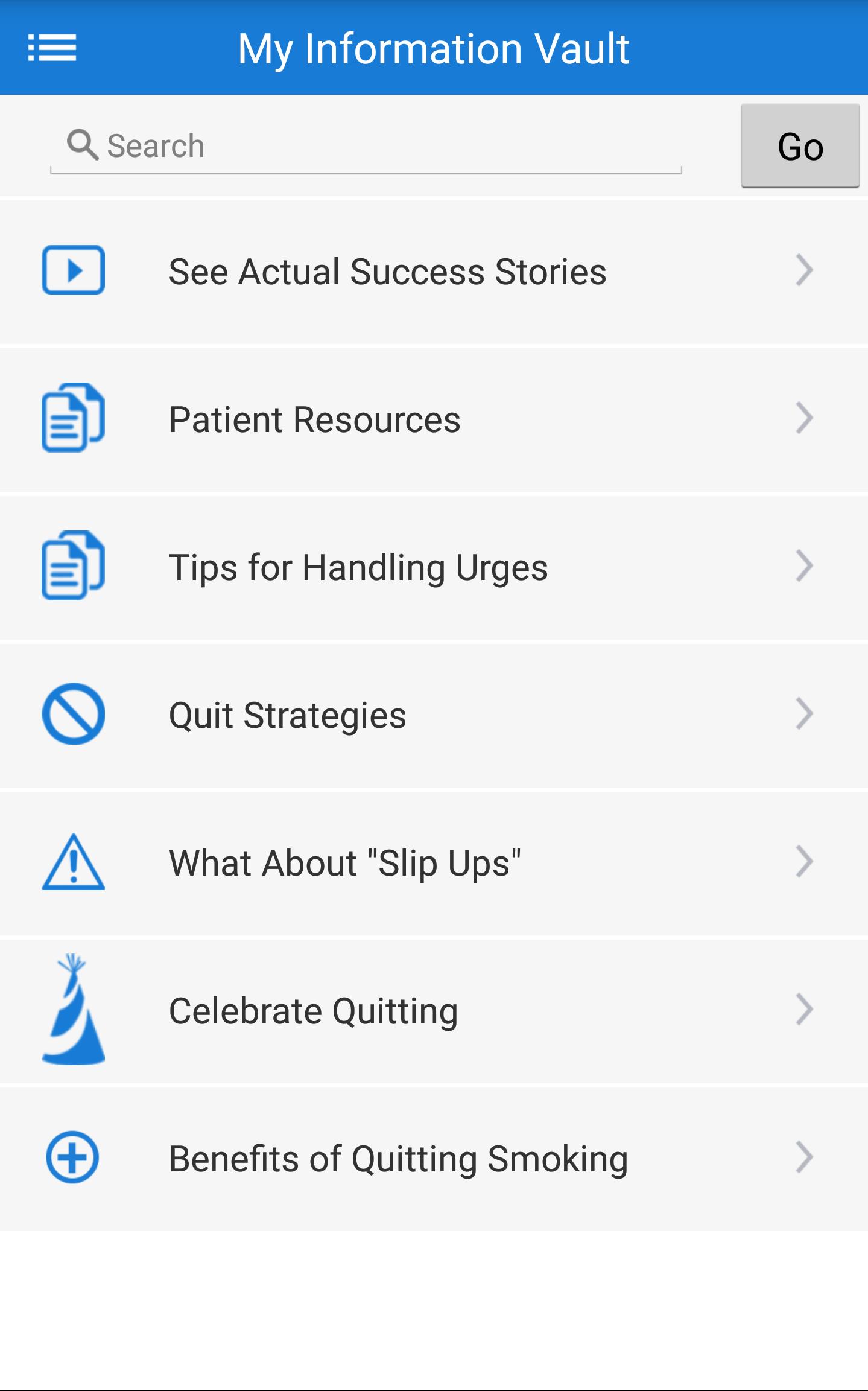 ผู้ใช้จะได้รับข้อมูลและการส่งข้อความสร้างแรงบันดาลใจเพื่อช่วยพวกเขาบนเส้นทางที่จะเลิกสูบบุหรี่ แอพนี้ยังช่วยให้ผู้ใช้สามารถตั้งค่าการแจ้งเตือนให้ใช้ยาตามที่แพทย์กำกับเพื่อเติมใบสั่งยาตามกำหนดเวลาและมีแรงจูงใจในการส่งข้อความและเคล็ดลับในการเลิกสูบบุหรี่ ยาไฟเซอร์ไม่ได้มีวัตถุประสงค์เพื่อวินิจฉัยรักษารักษาป้องกันหรือตรวจสอบสภาพสุขภาพใด ๆ และต้องไม่ใช้แทนคำแนะนำทางการแพทย์ของผู้เชี่ยวชาญด้านการดูแลสุขภาพที่มีคุณสมบัติเหมาะสม แอพนี้มีไว้สำหรับผู้ชมในสหรัฐอเมริกาเท่านั้น