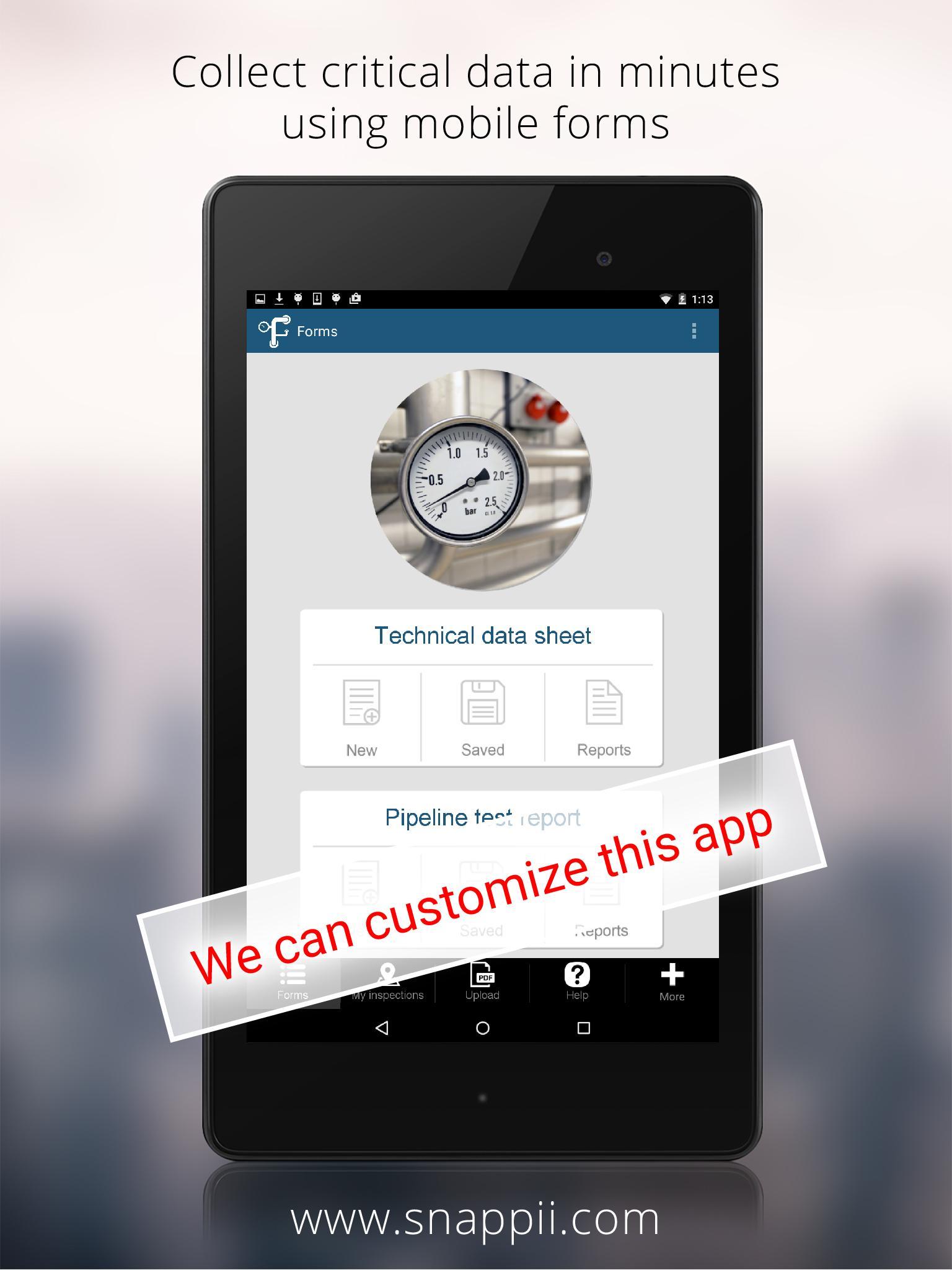 อย่าชำระสำหรับแอพที่ไม่เหมาะกับความต้องการทางธุรกิจของคุณ แอพ Snappii สามารถปรับแต่งได้ 100% ปรับใช้อย่างปลอดภัยและรวมเข้ากับระบบ Back End ของคุณได้อย่างราบรื่นโดยใช้แพลตฟอร์ม Snappii ที่อุดมไปด้วยฟีเจอร์ การใช้แอพมือถือไปป์ไลน์สำหรับการตรวจสอบคุณจะรักษาท่อในสภาพที่ดีให้ธุรกิจของคุณปลอดภัยปรับปรุงการบริการลูกค้าและความพึงพอใจ