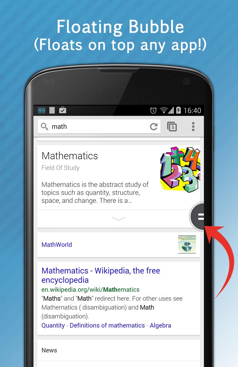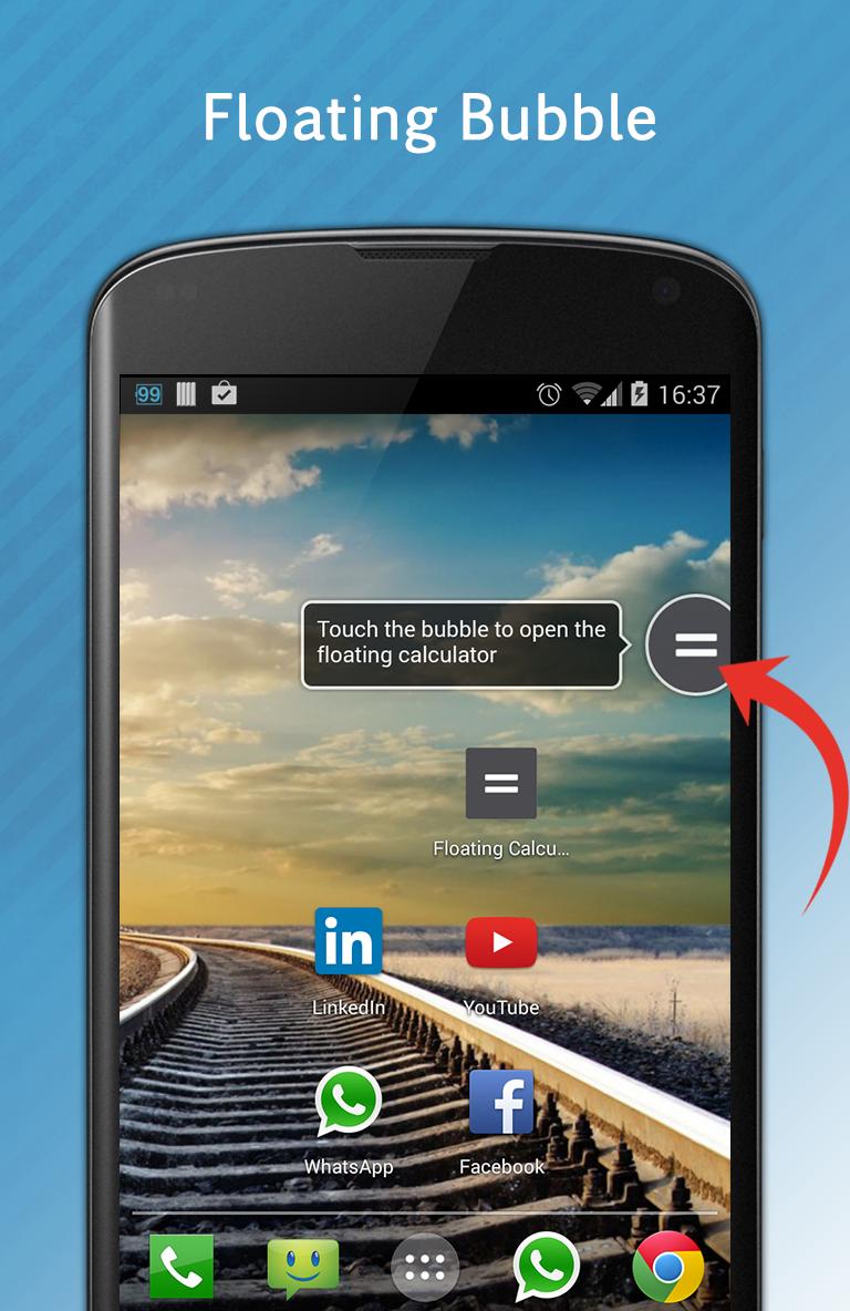 Floating Calculator ขึ้นอยู่กับแอพเครื่องคิดเลขสต็อก Android ปรากฏตัวครั้งแรกใน ICS และเข้ากันได้กับ Android 2.2 ขึ้นไป