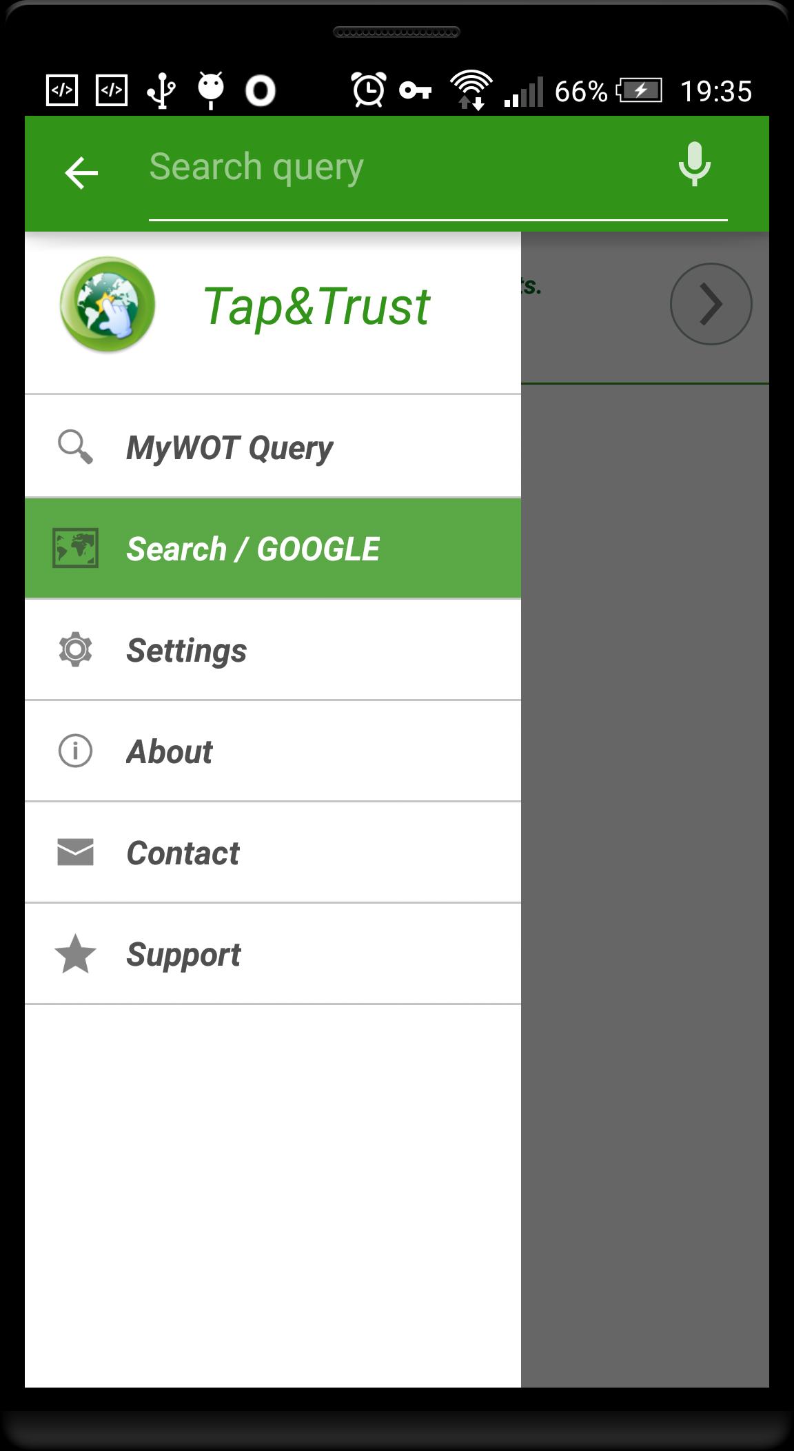 - แอปพลิเคชันเป็นแอปพลิเคชั่นที่ไม่เป็นทางการของ Web of Trust (ใช้ API ของ WOT)