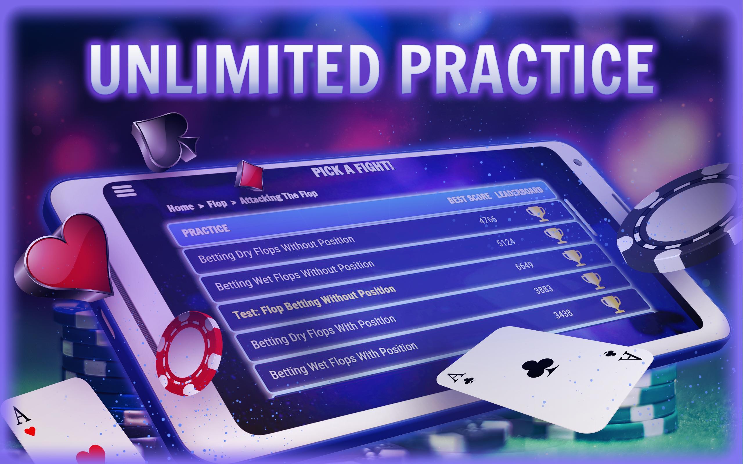 คุณสามารถเล่นฝึกฝนและปรับปรุงโดยใช้เทรนเนอร์ที่ไม่เหมือนใครซึ่งจำลองเกม Cash Texas Hold'Em จริงและทัวร์นาเมนต์